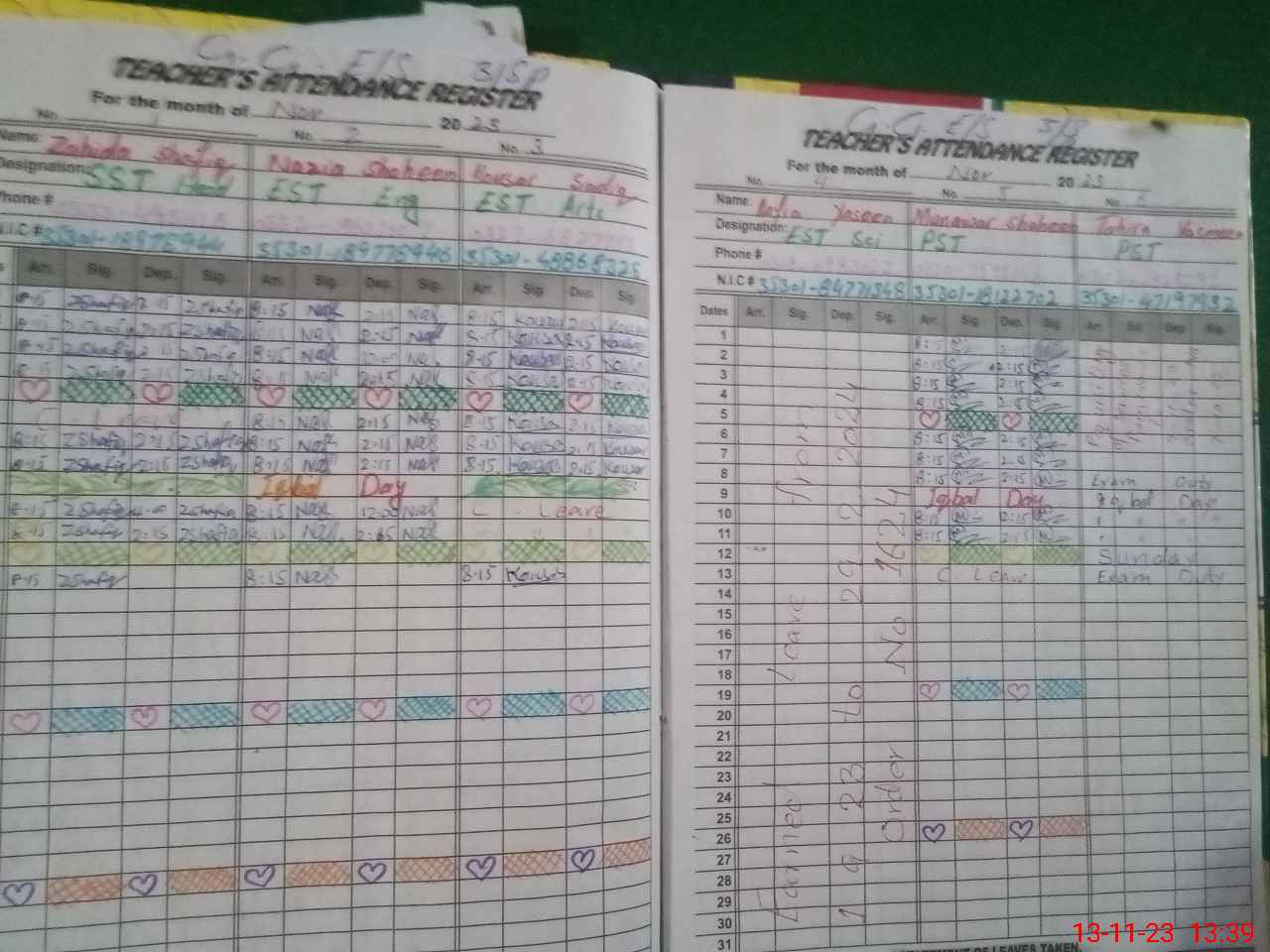 | 35**** | Ta**** Ya**** | 1 | 1 | 0 | 0 | 0 | 0 | 0 | 0 | 0 | 0 | 0 | Exam Duty |
