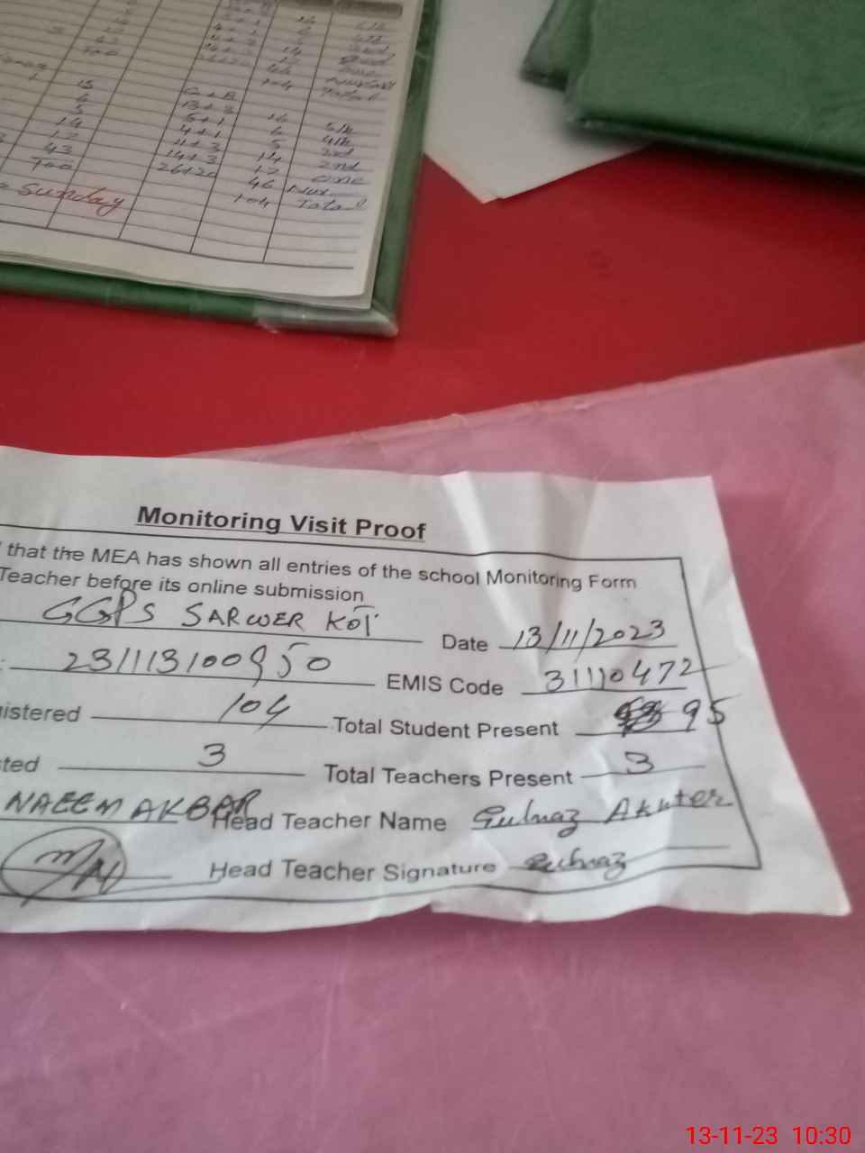| EMIS Code: 31110472 | Name of School: GGPS SARWER KOT | |||
