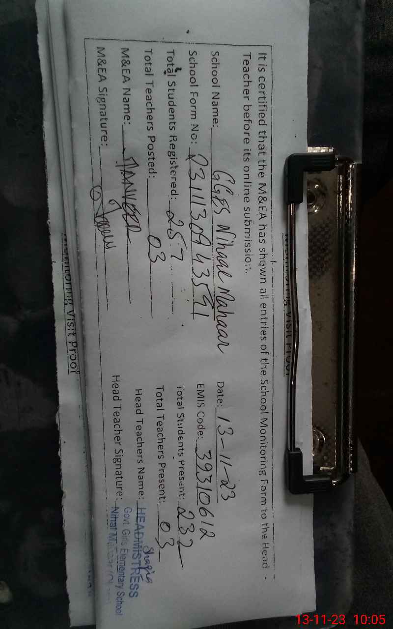 | EMIS Code: 39310612 | Name of School: GGES NAHAL MOHAR | |||