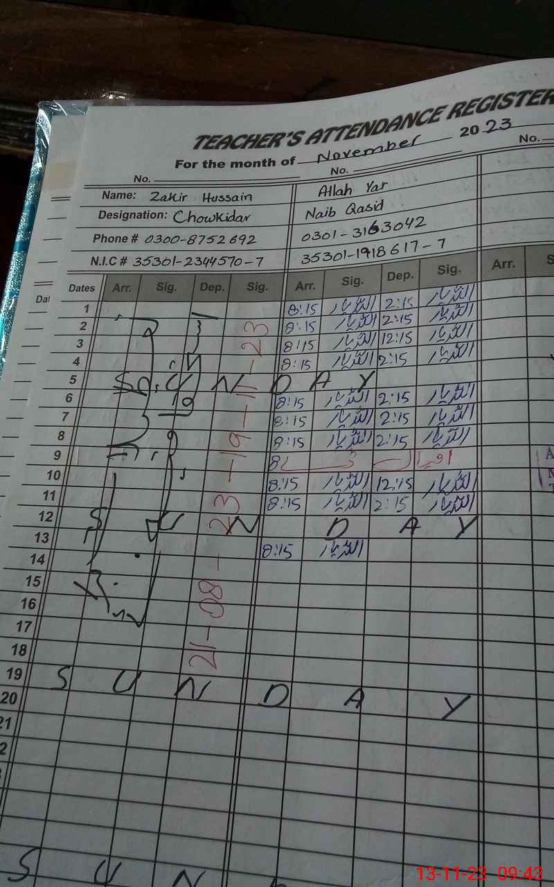 | 35**** | Za**** Hu**** | CHOKIDAR | Regular | 30 | 0 | 0 | 0 | 0 | 0 | 0 | 30 | 0 | Earned |