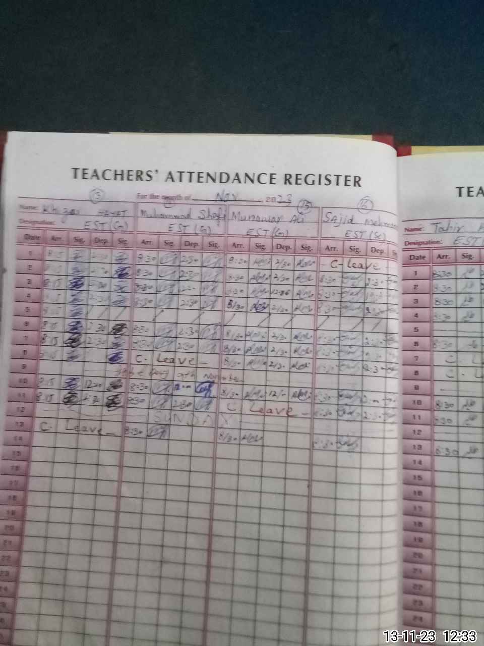 | CNIC | Full Name | Designation | R/C | Absence During Last Calender Month |