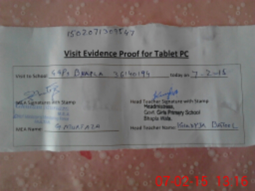 | Attendance Register | Head Teacher | MEA with School | Visit Proof |