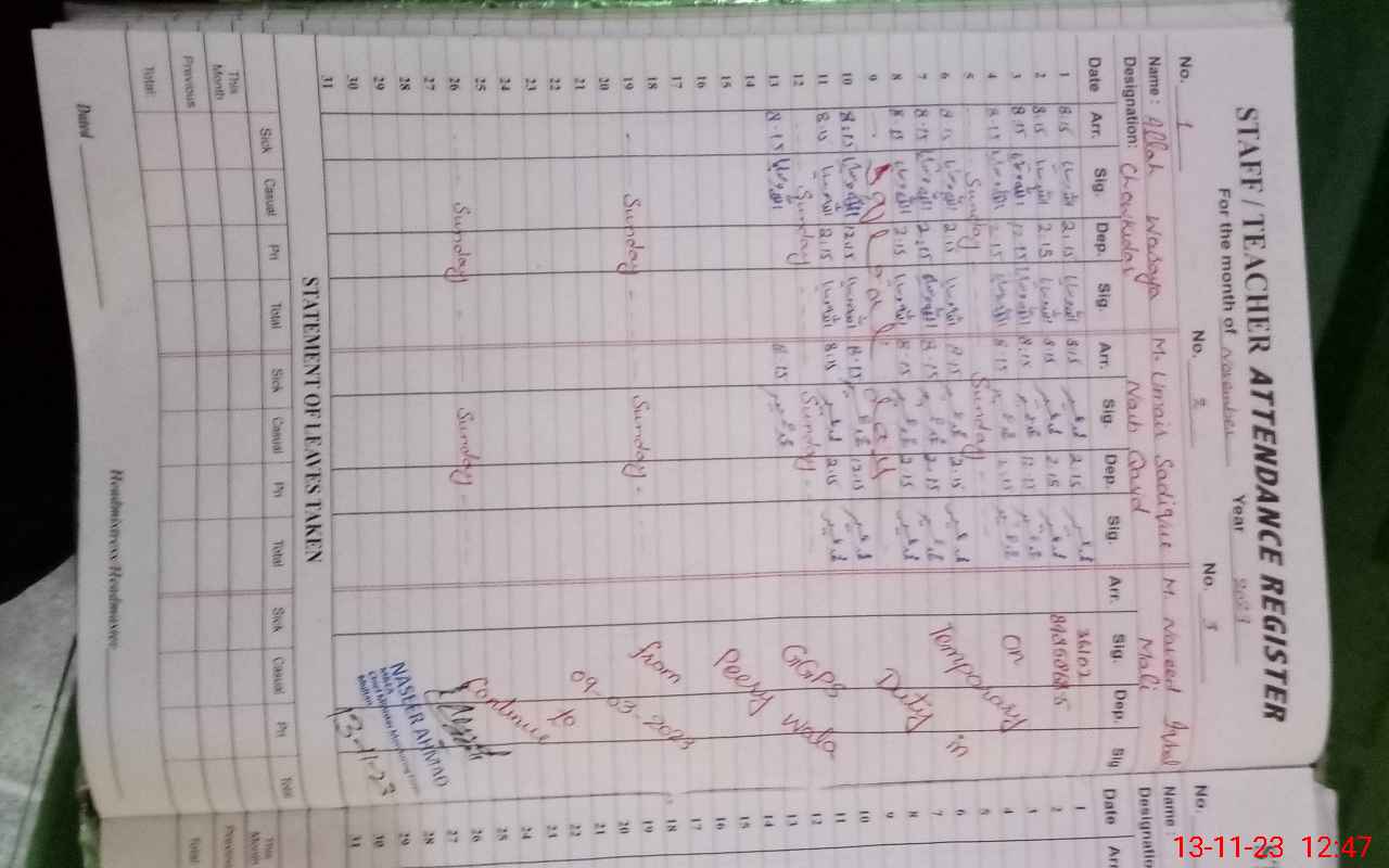 | Name: Sa**** Ba**** Designation: (School Headmaster's/Headmistress's) SST Art Head Phone/Cell Number: 03**** |