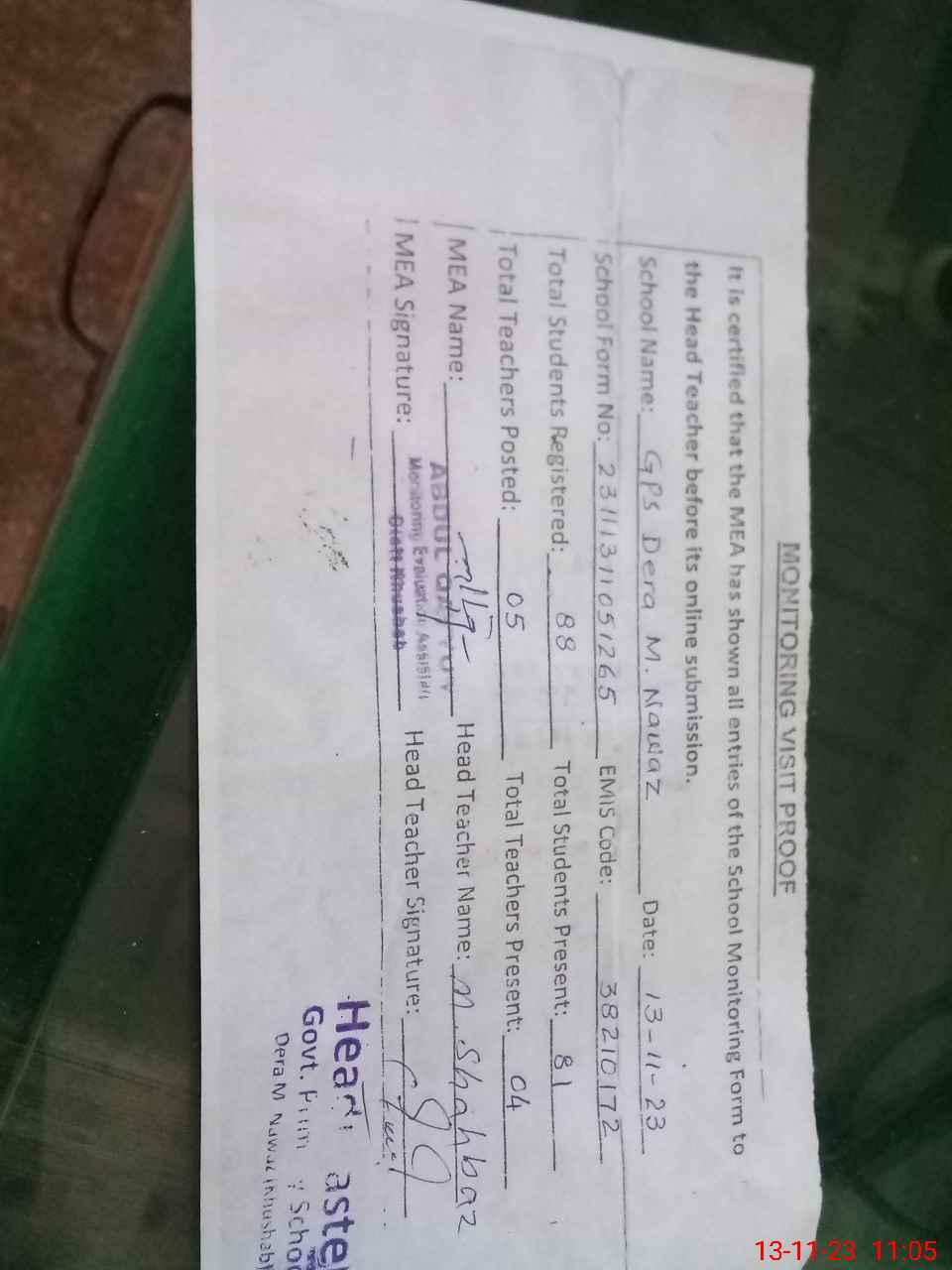 | EMIS Code: 38210172 | Name of School: GPS DERA MUHAMMAD NAWAZ | |||