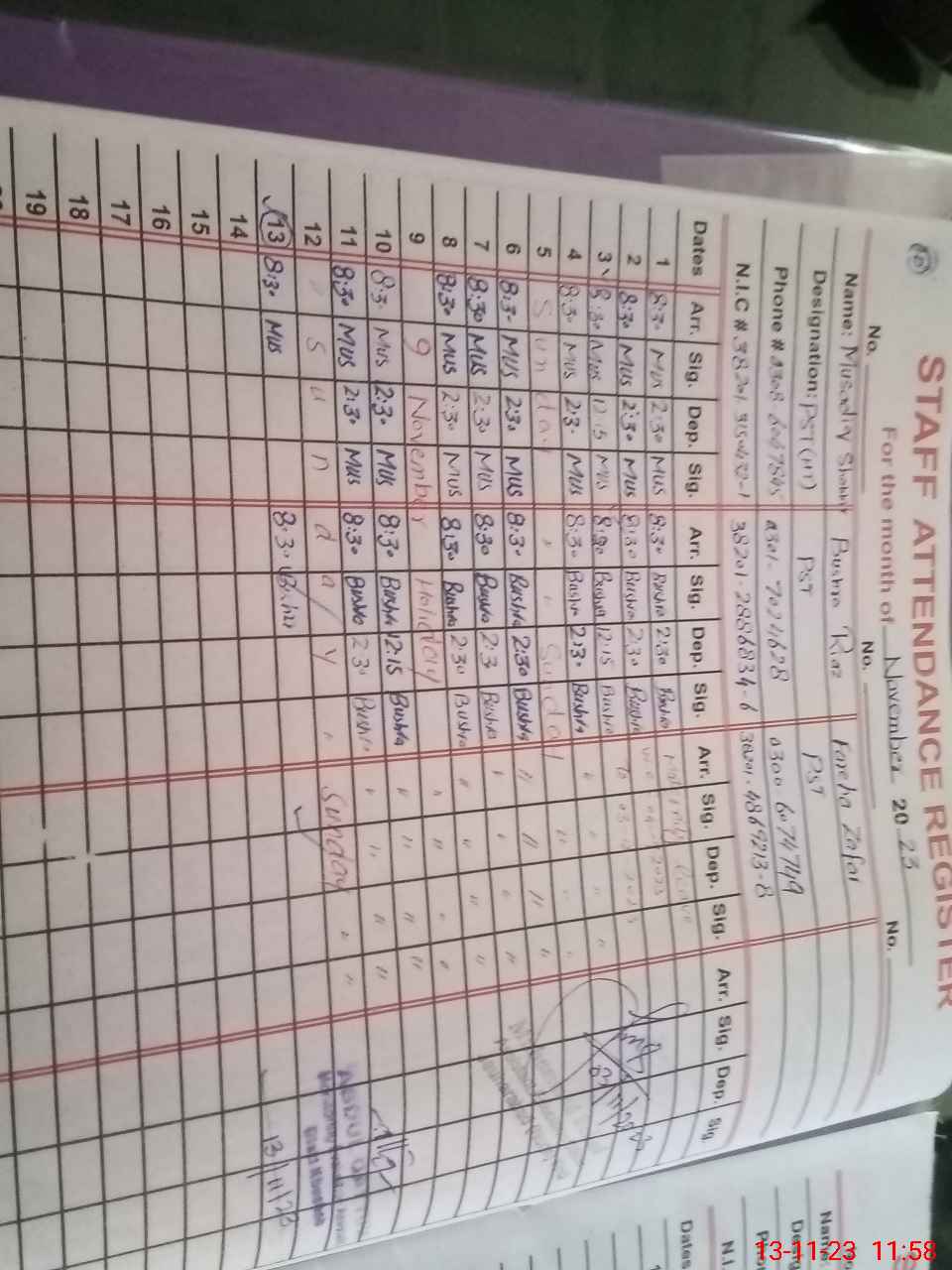 | Name: Mu**** Sh**** Designation: (School Headmaster's/Headmistress's) PST Phone/Cell Number: 03**** |