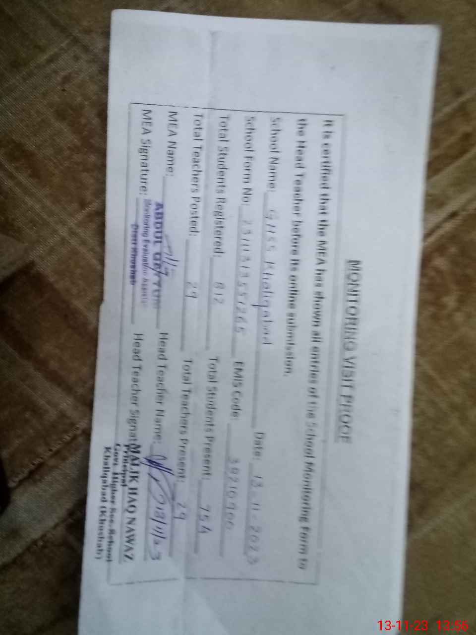 | EMIS Code: 38210900 | Name of School: GHSS KHALIQ ABAD | |||
