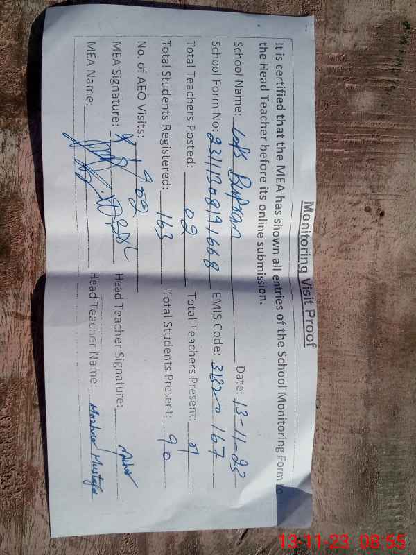 | Attendance Register | Head Teacher | MEA with School | Visit Proof |