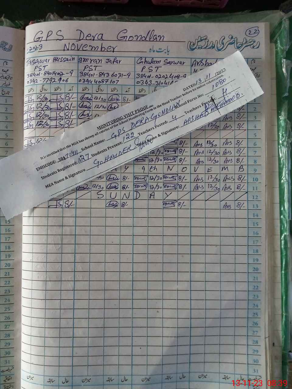 | EMIS Code: 38470411 | Name of School: GPS DERA GONDLAN | |||