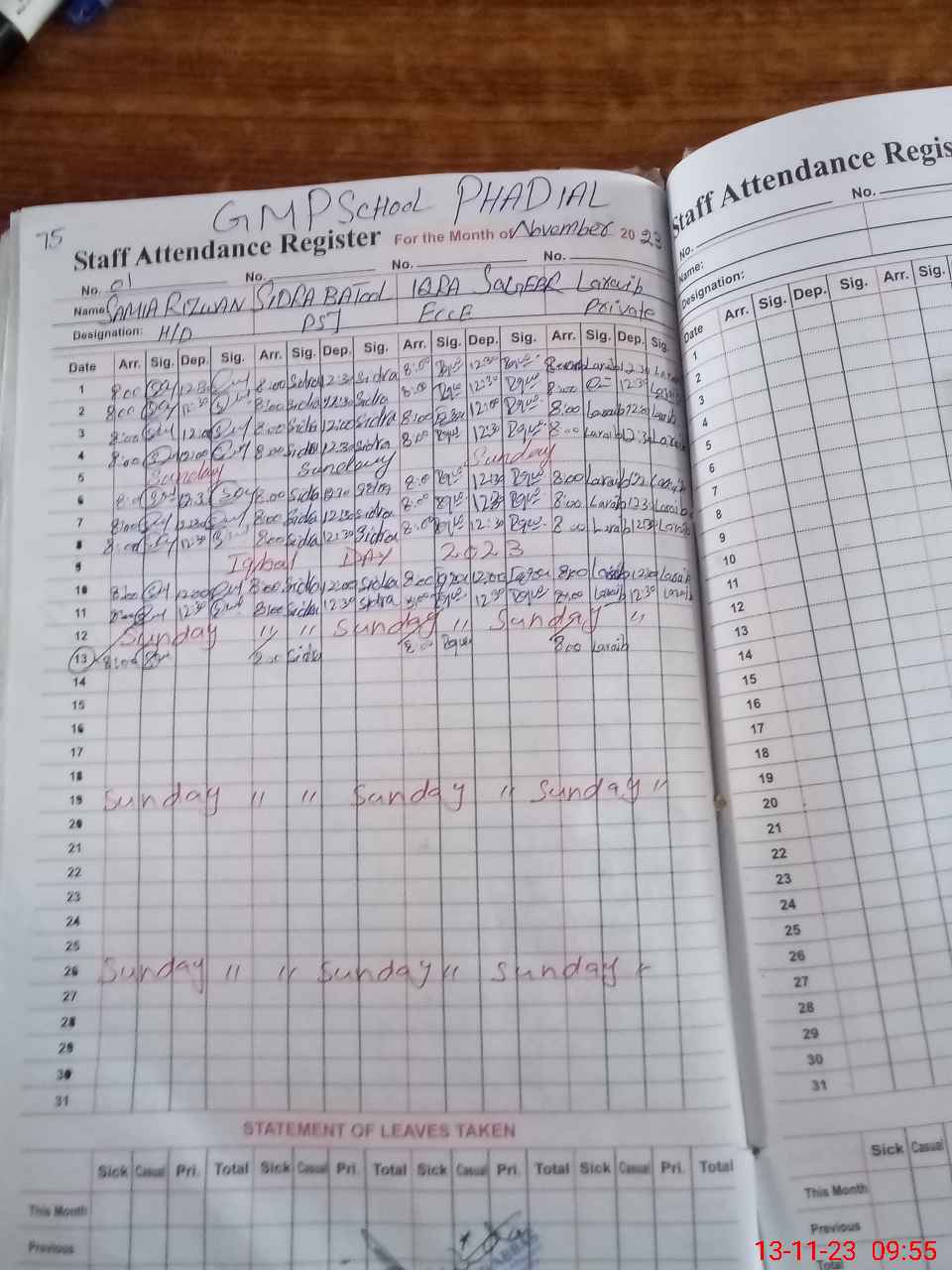 | Name: SA**** RI**** Designation: (School Headmaster's/Headmistress's) PTC/JV Phone/Cell Number: 03**** |