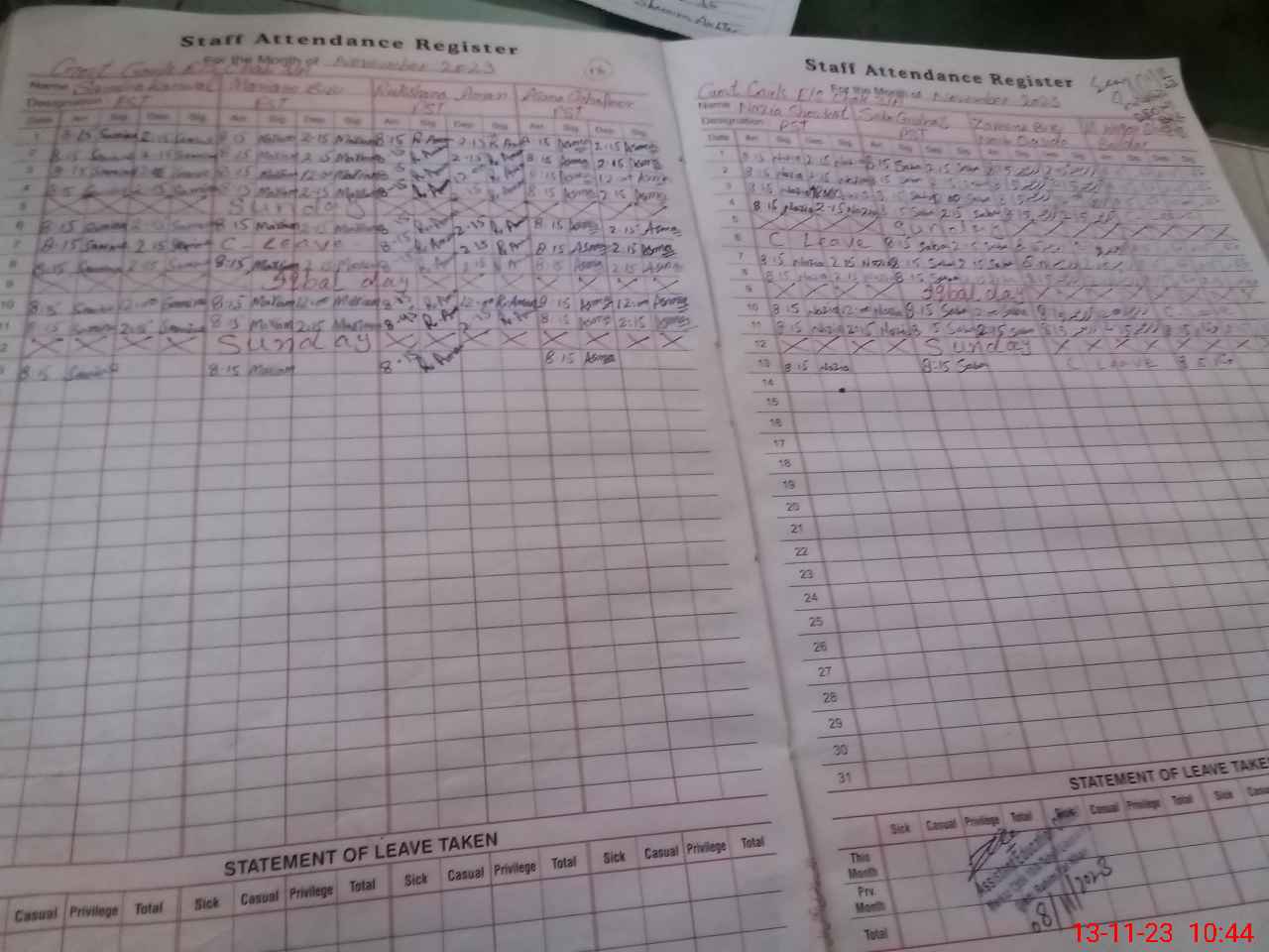 | Leave | Duty | Absent | Maternity | Medical | Ex- Pak |
