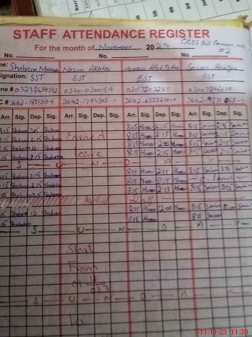 | CNIC | Full Name | Designation | R/C | Absence During Last Calender Month |