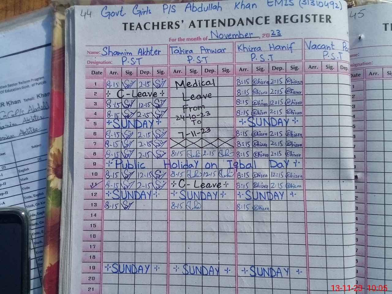 | Name: SH**** AK**** Designation: (School Headmaster's/Headmistress's) PST Phone/Cell Number: 03**** |