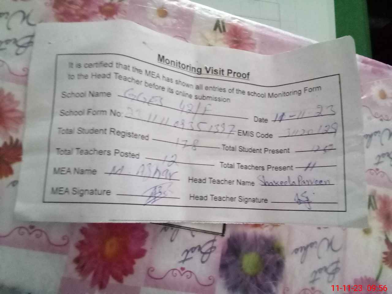 | EMIS Code: 31120129 | Name of School: GGES CHAK NO. 42/F | |||