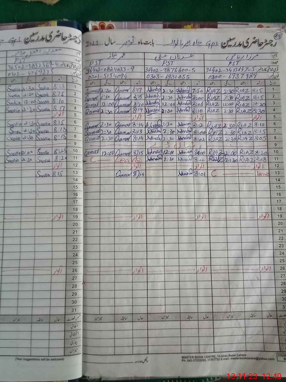 | CNIC | Full Name | Designation | R/C | Absence During Last Calender Month |