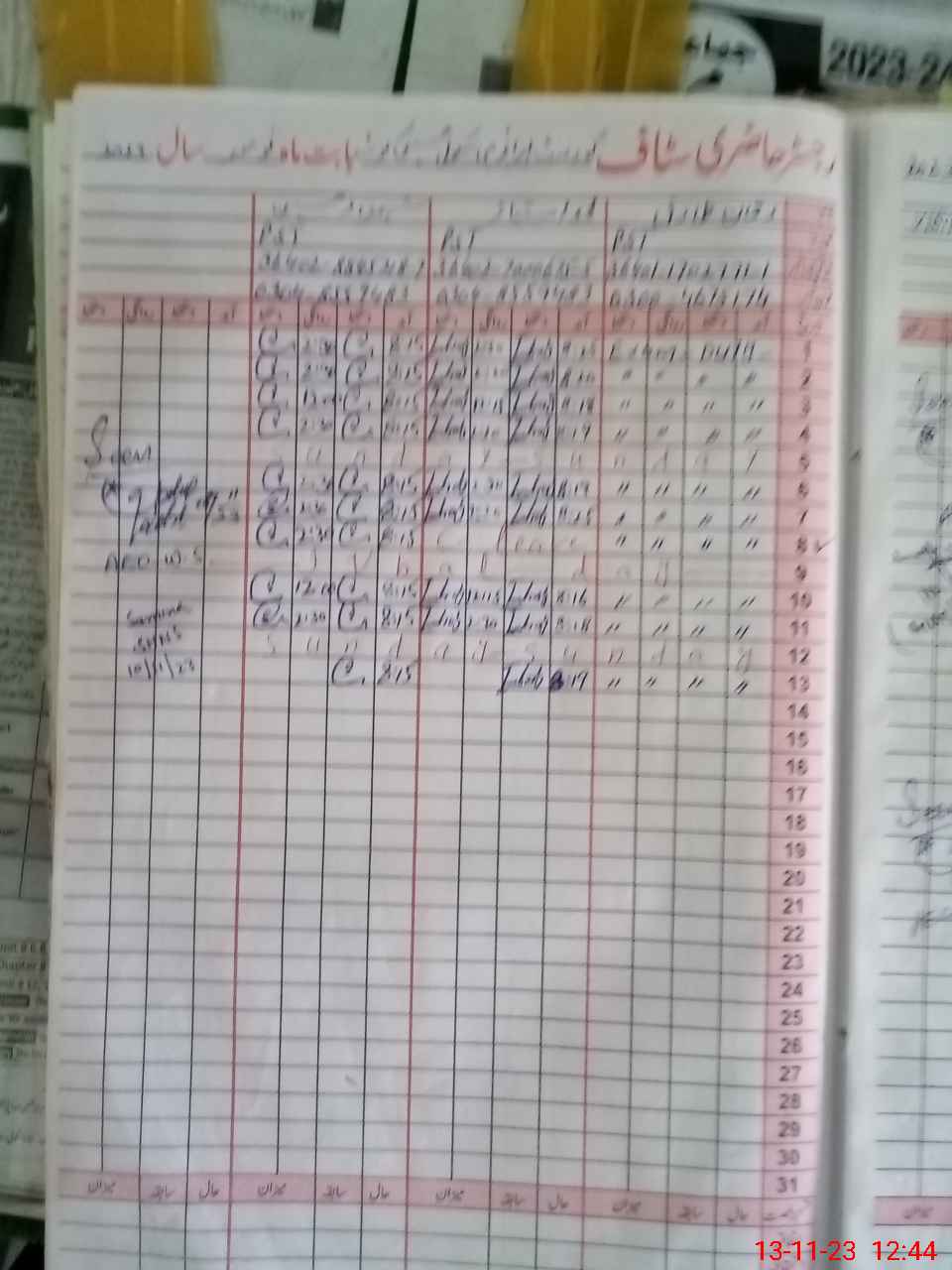 | CNIC | Full Name | Designation | R/C | Absence During Last Calender Month |