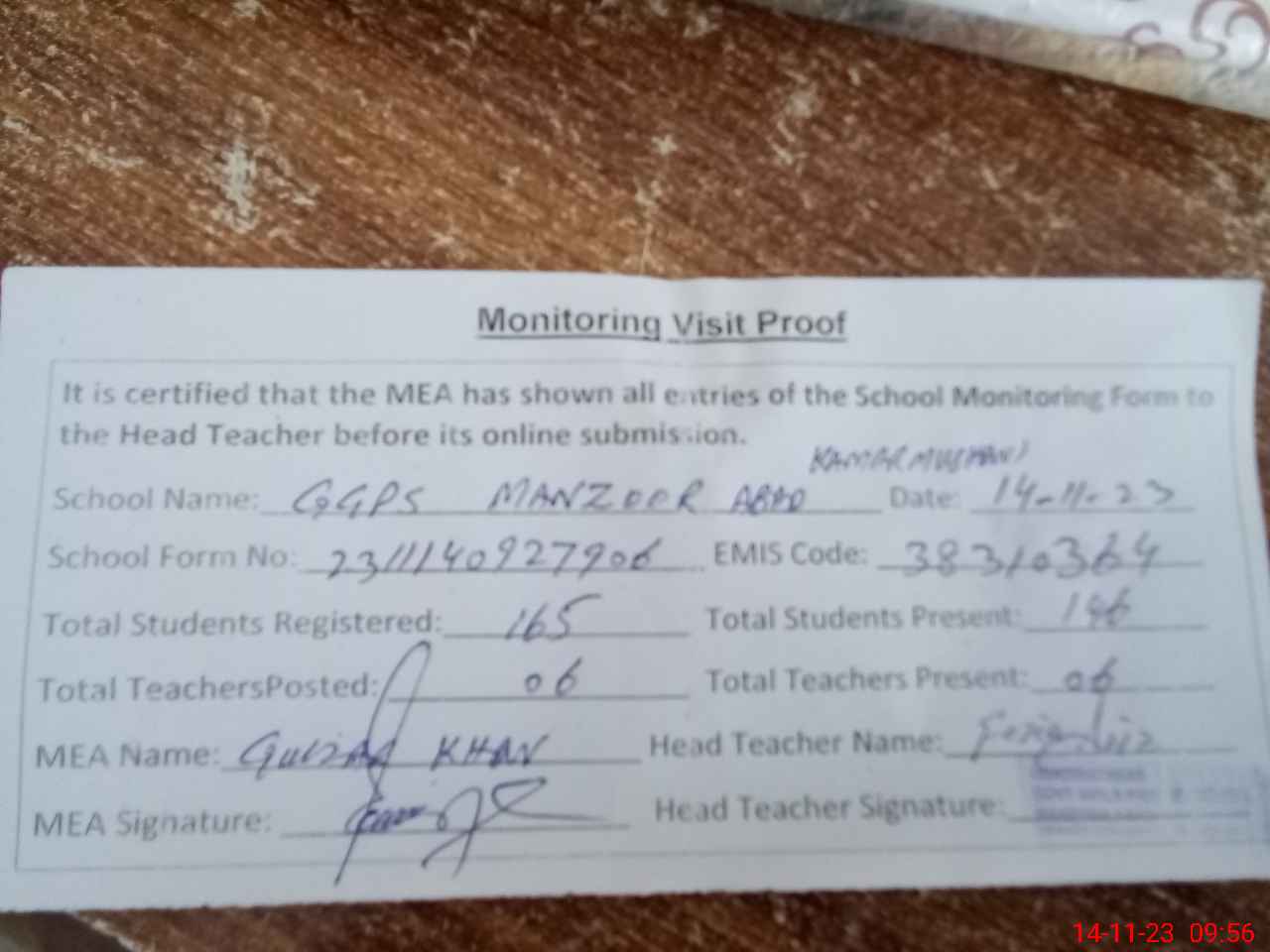 | EMIS Code: 38310364 | Name of School: GGPS MANZOOR ABAD KAMAR MUSHANI | |||