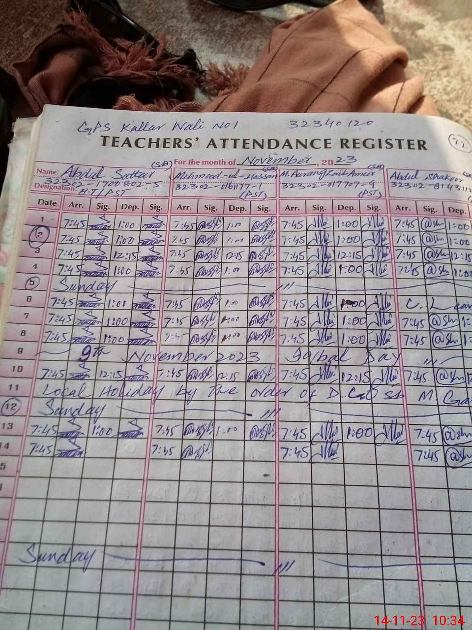 | EMIS Code: 32340120 | Name of School: GPS KALLAR WALI NO.1 | |||