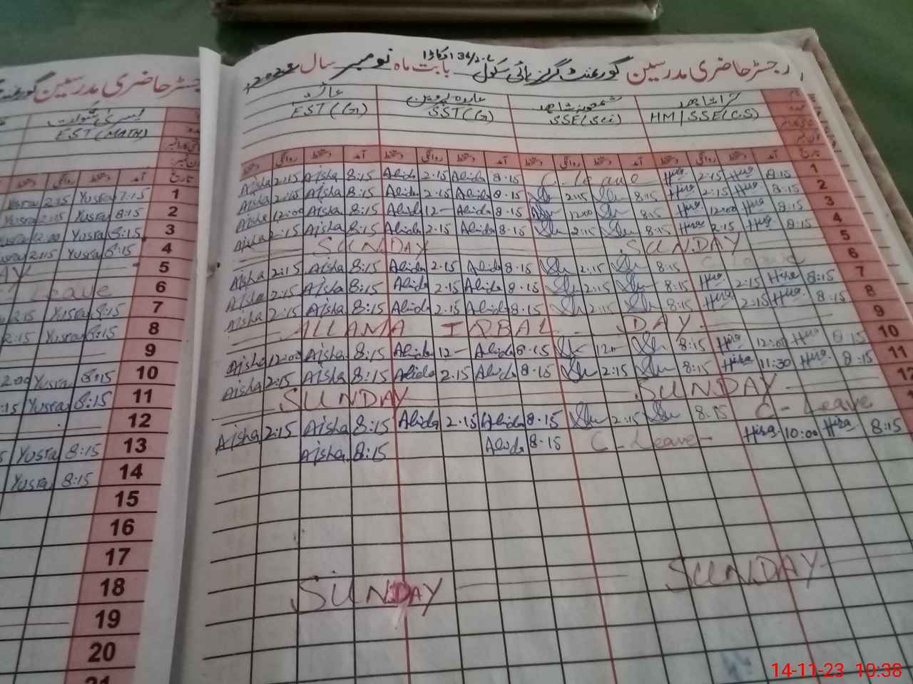 | CNIC | Full Name | Designation | R/C | Absence During Last Calender Month |