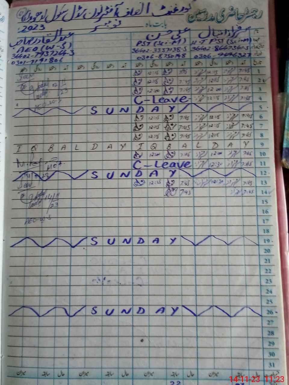| Name: Mu**** Sa**** Iq**** Designation: (School Headmaster's/Headmistress's) PST Phone/Cell Number: 03**** |
