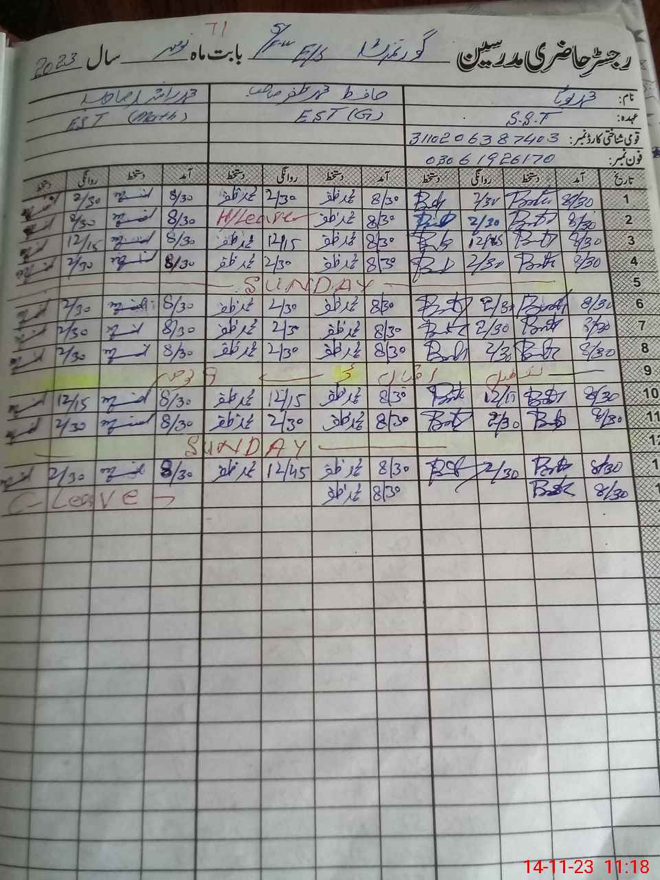 | Name: Ma**** Me**** Designation: (School Headmaster's/Headmistress's) EST Sce Phone/Cell Number: 03**** |