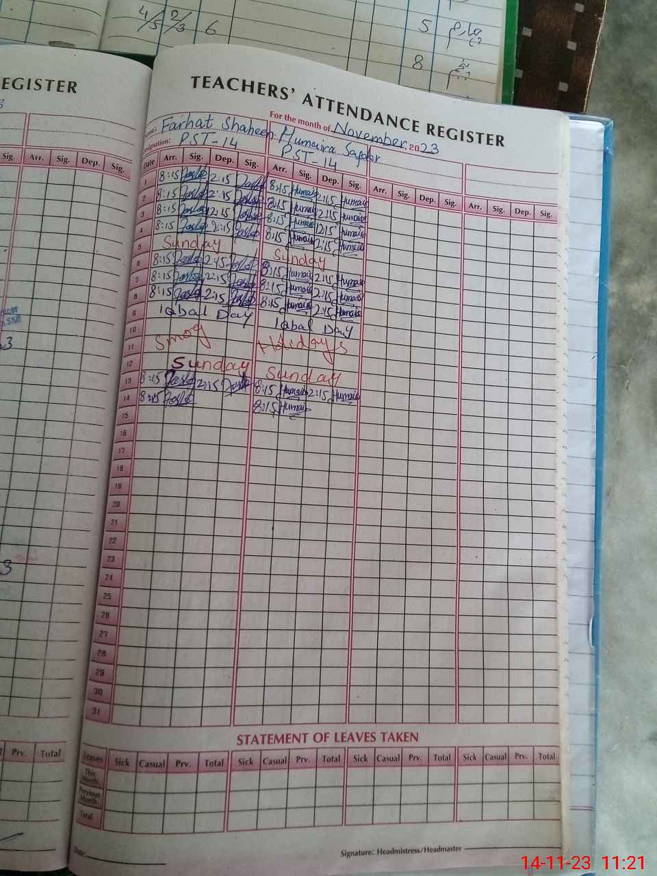 | Name: Fa**** Sh**** Designation: (School Headmaster's/Headmistress's) PST Phone/Cell Number: 03**** |