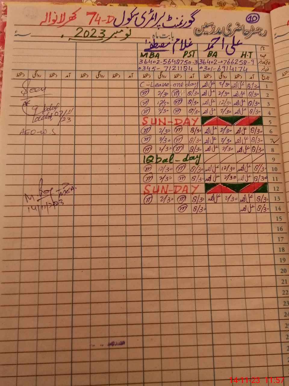 | Name: Al**** Ah**** Designation: (School Headmaster's/Headmistress's) PST Phone/Cell Number: 03**** |