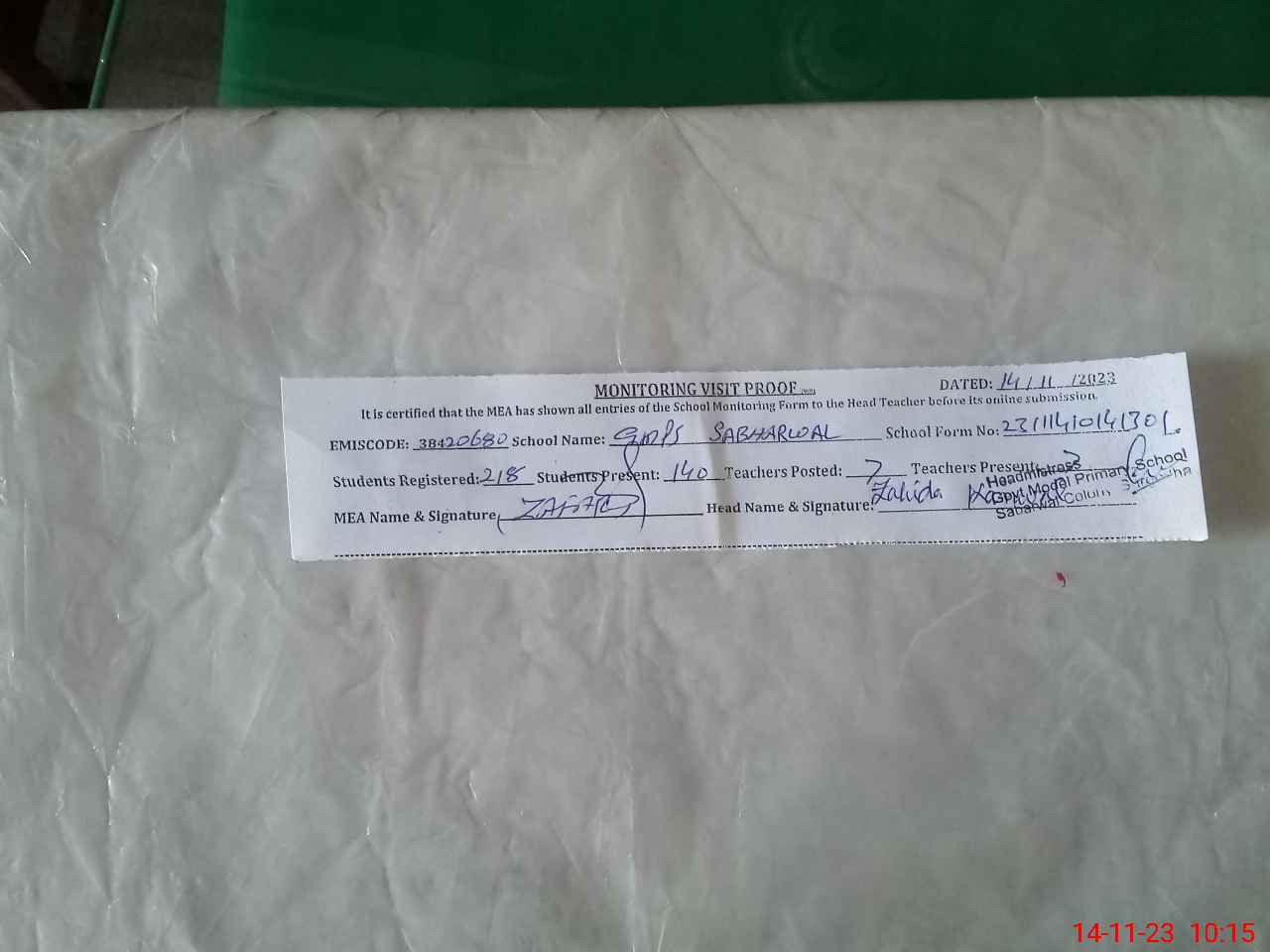 | EMIS Code: 38420680 | Name of School: GMPS SABARWAL COLONY | |||