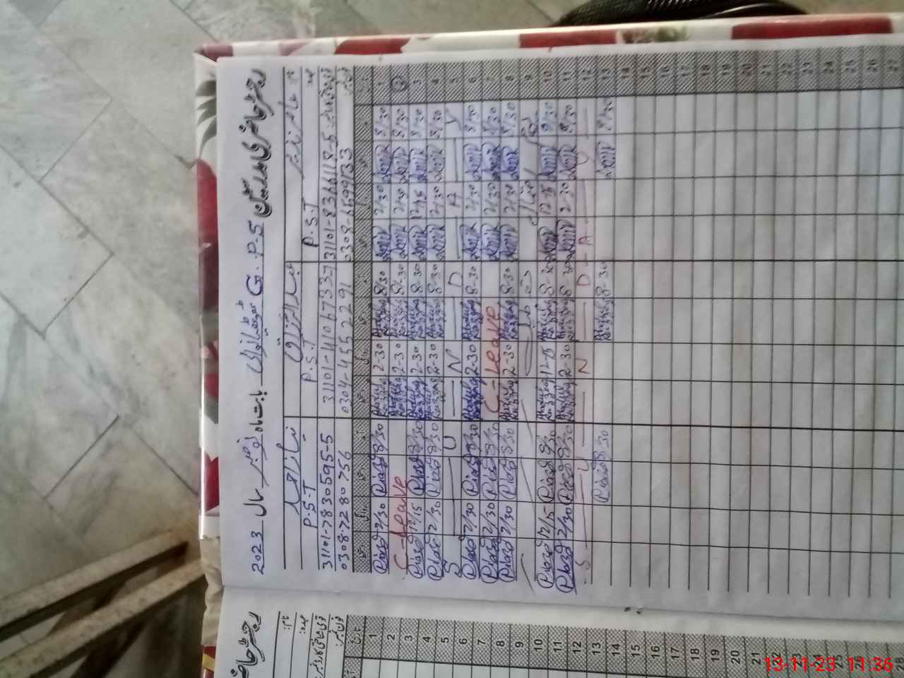 | CNIC | Full Name | Designation | R/C | Absence during last cal. month |