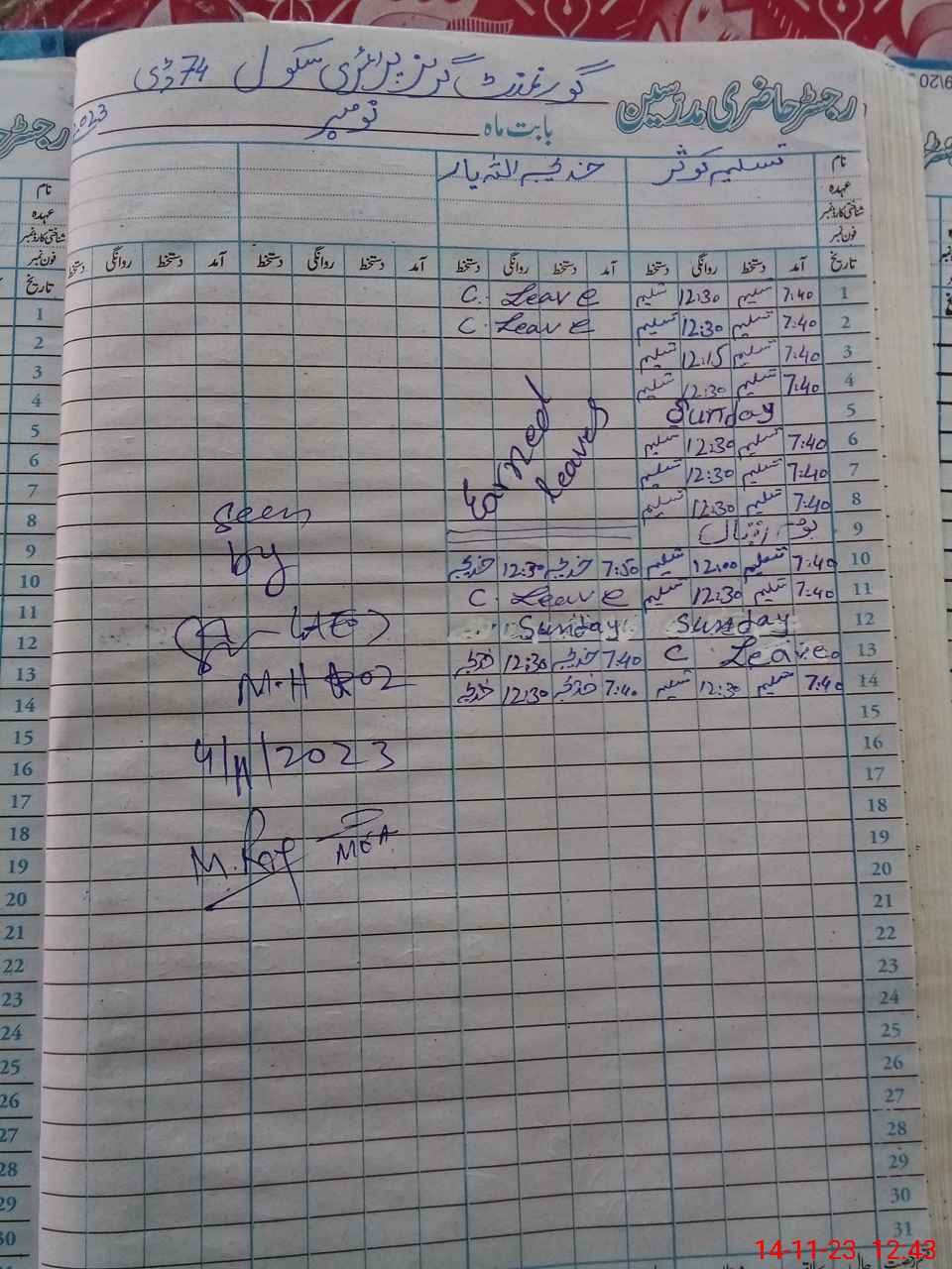 | CNIC | Full Name | Designation | R/C | Absence During Last Calender Month |