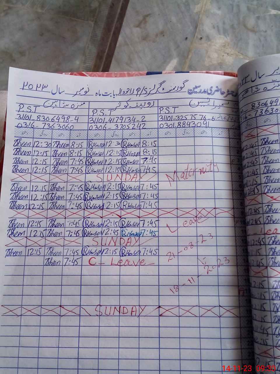 | Name: SU**** YA**** Designation: (School Headmaster's/Headmistress's) PST (HT) Phone/Cell Number: 03**** |
