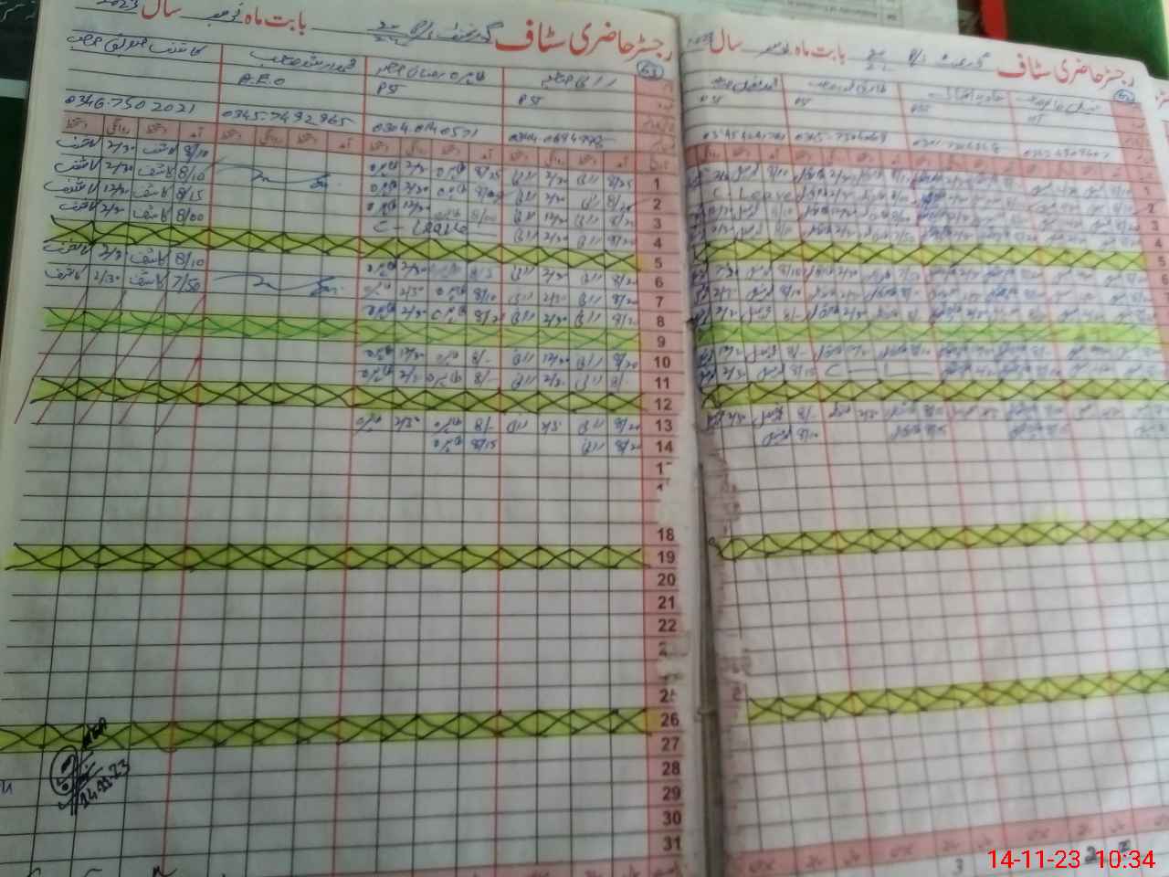 | CNIC | Full Name | Designation | R/C | Absence During Last Calender Month |