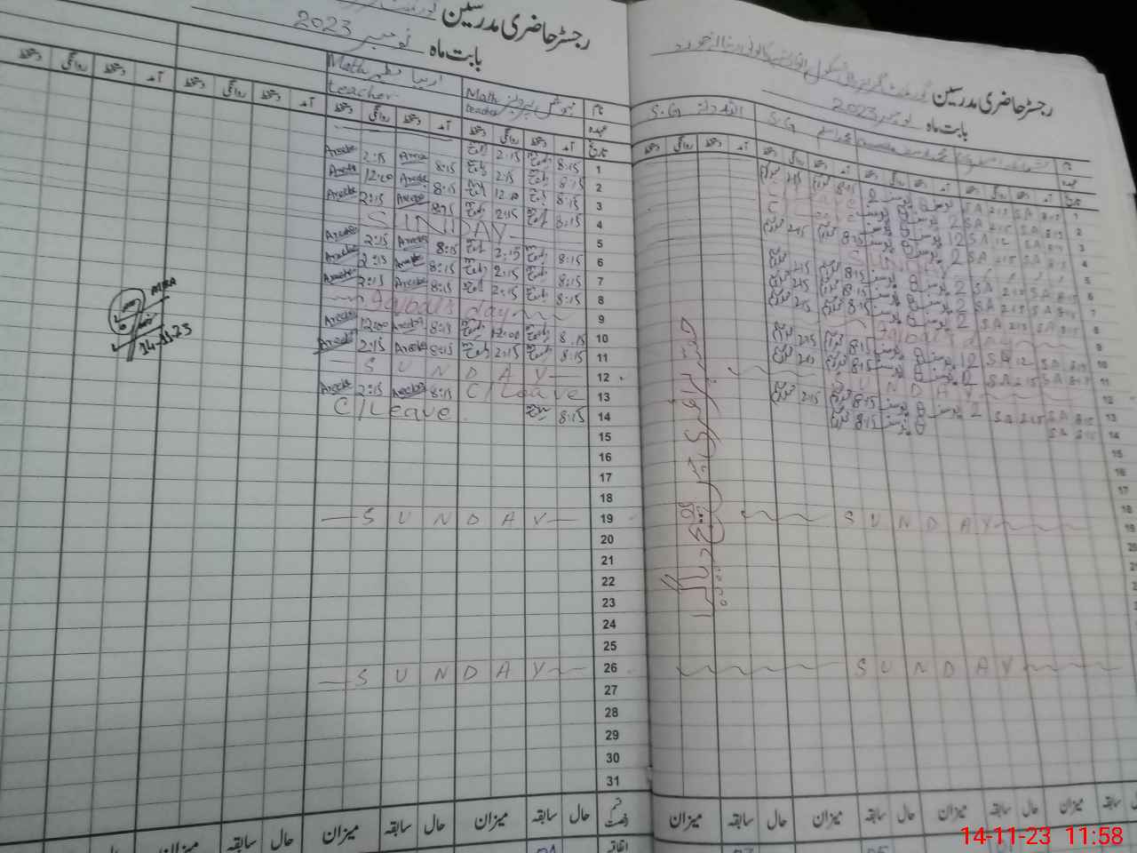 | CNIC | Full Name | Designation | R/C | Absence During Last Calender Month |