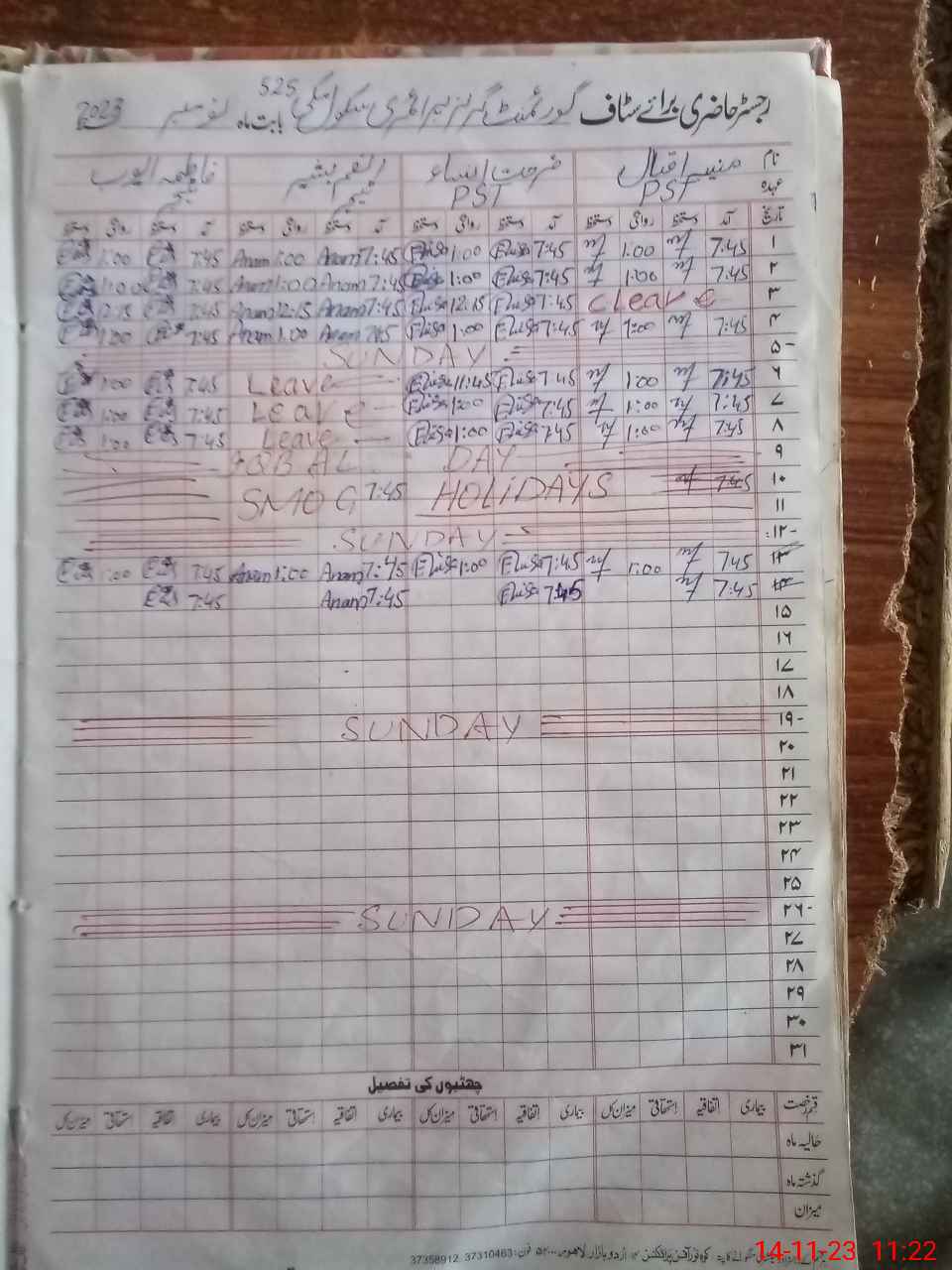 | Name: MU**** IQ**** Designation: (School Headmaster's/Headmistress's) PST Phone/Cell Number: 03**** |