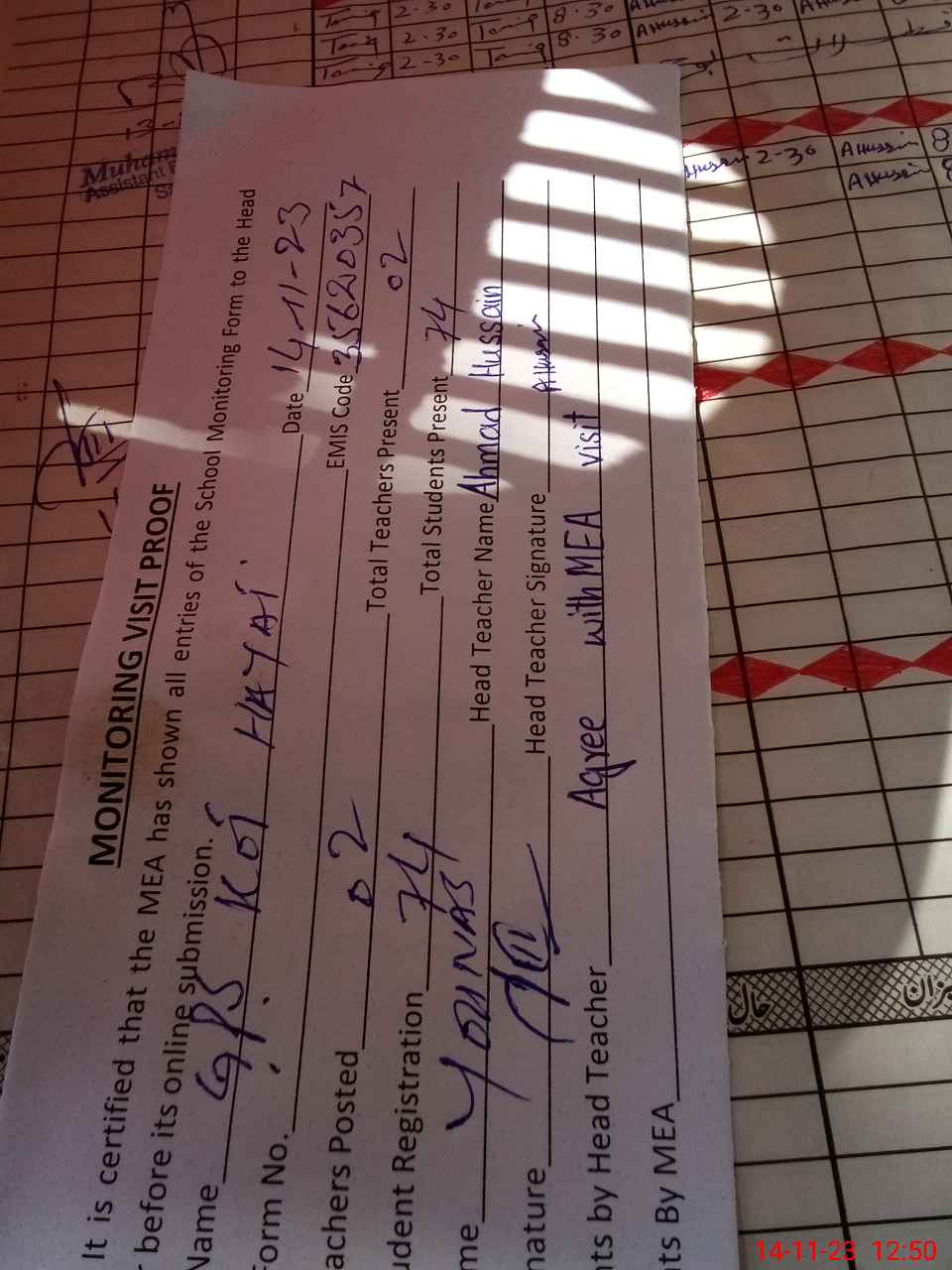 | EMIS Code: 35620357 | Name of School: GPS KOT HAYAT KHAN | |||