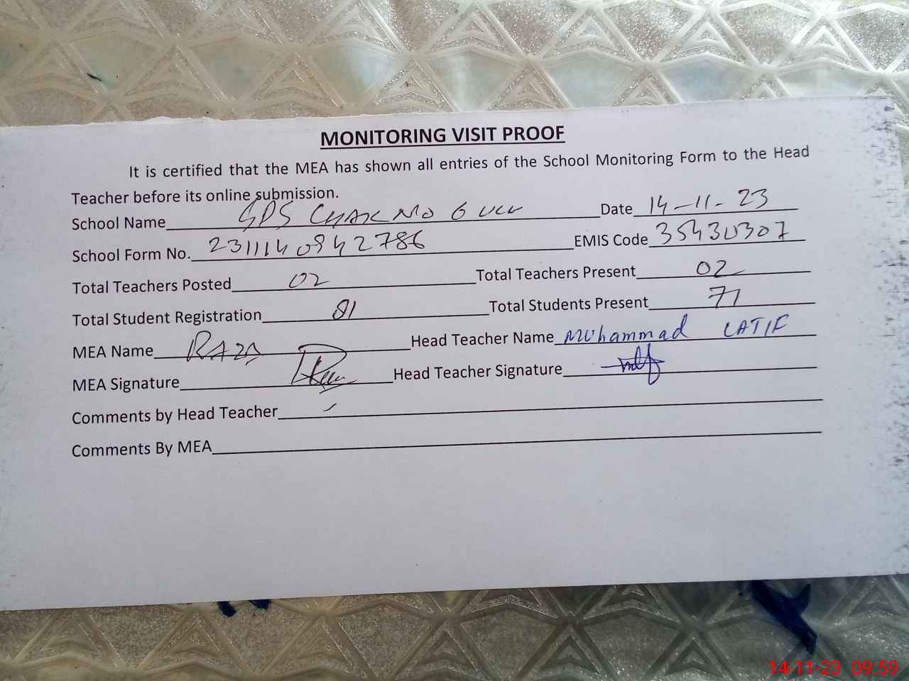 | EMIS Code: 35430307 | Name of School: GPS CHAK 6 UCC | |||