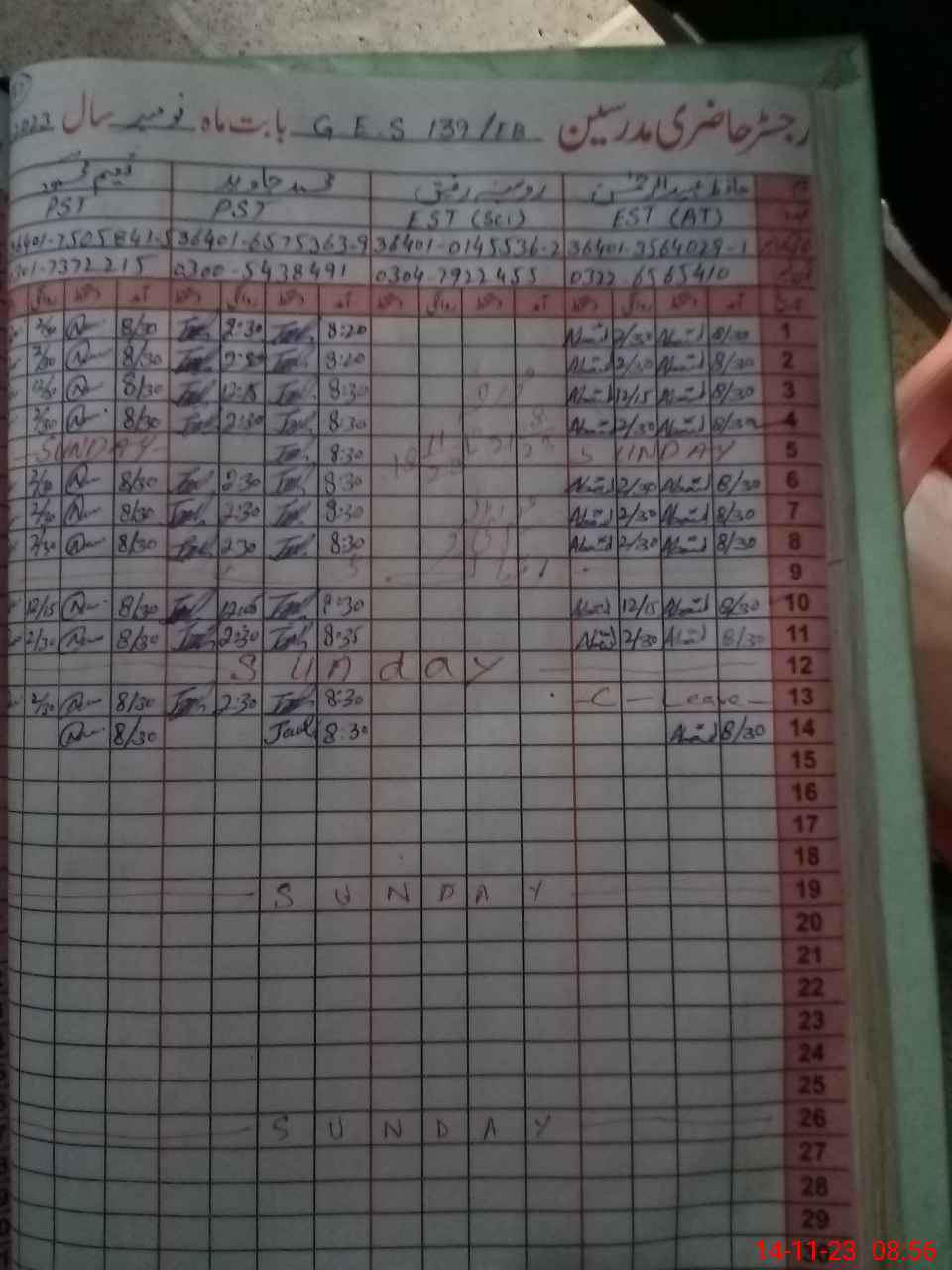 | Name: RA**** NA**** AH**** AF**** Designation: (School Headmaster's/Headmistress's) SST (SCIENCE) Phone/Cell Number: 03**** |