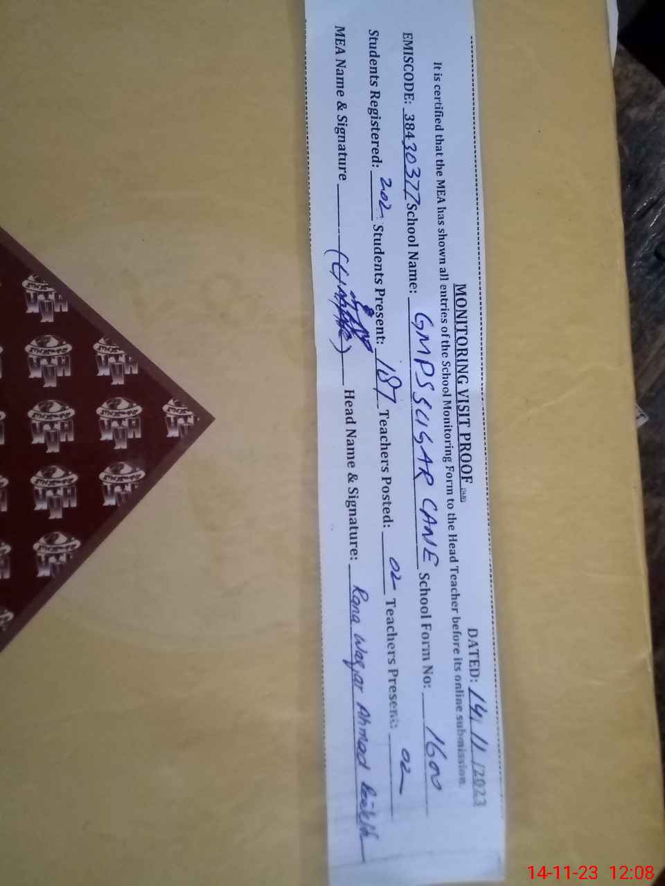 | EMIS Code: 38430377 | Name of School: GMPS SUGAR CANE | |||