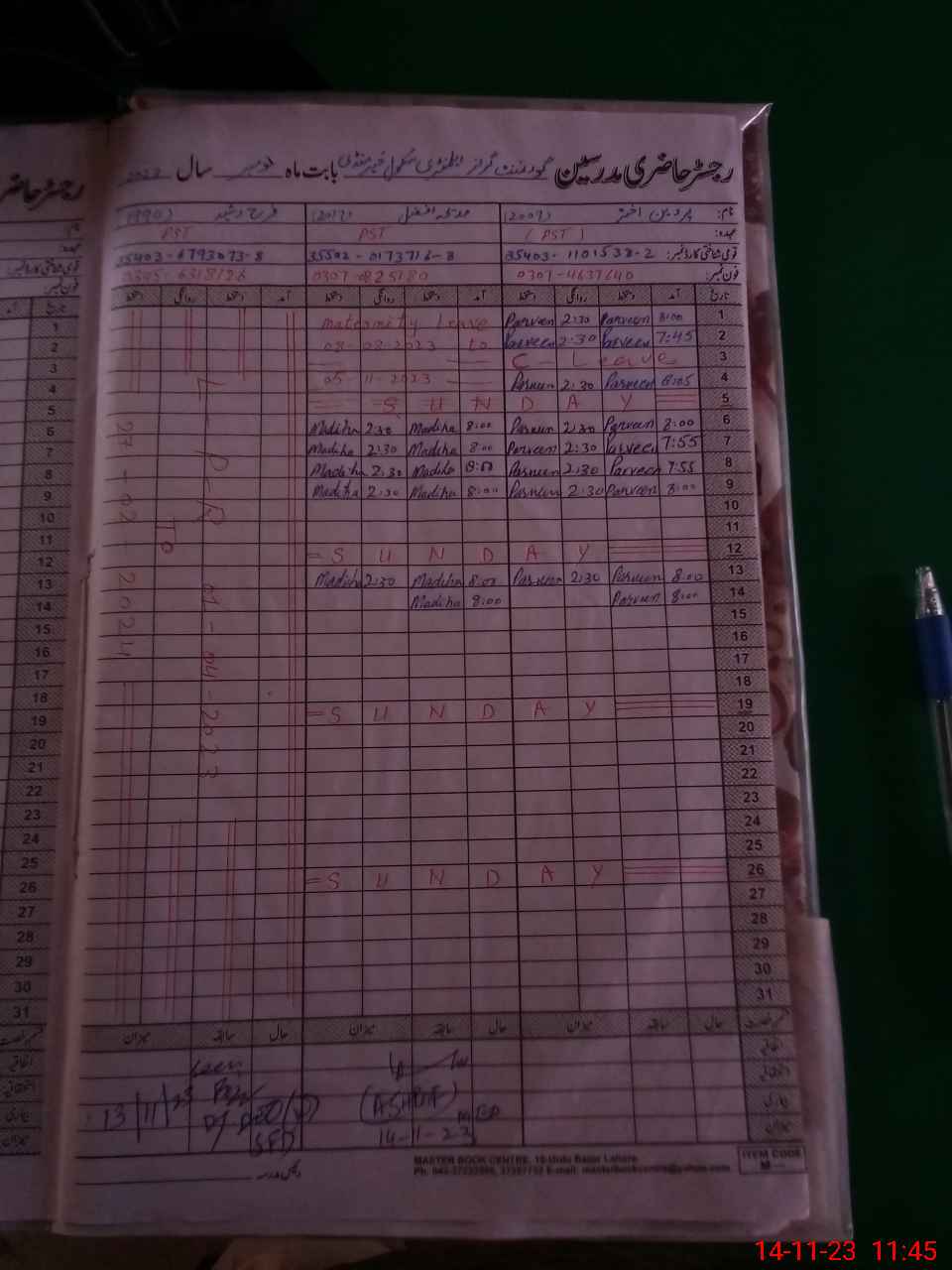 | CNIC | Full Name | Designation | R/C | Absence During Last Calender Month |