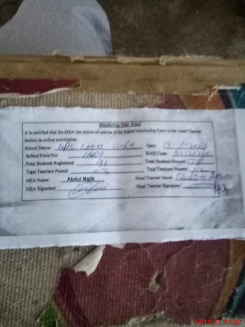 | EMIS Code: 32320220 | Name of School: GPS LOON WALA | |||