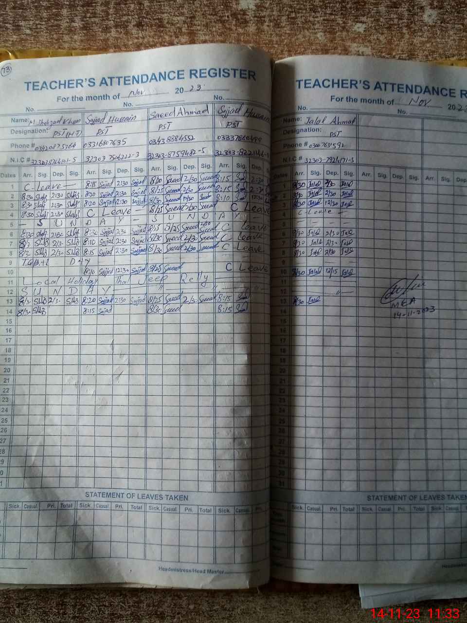 | Name: MSh**** Kh**** Designation: (School Headmaster's/Headmistress's) PST Phone/Cell Number: 03**** |