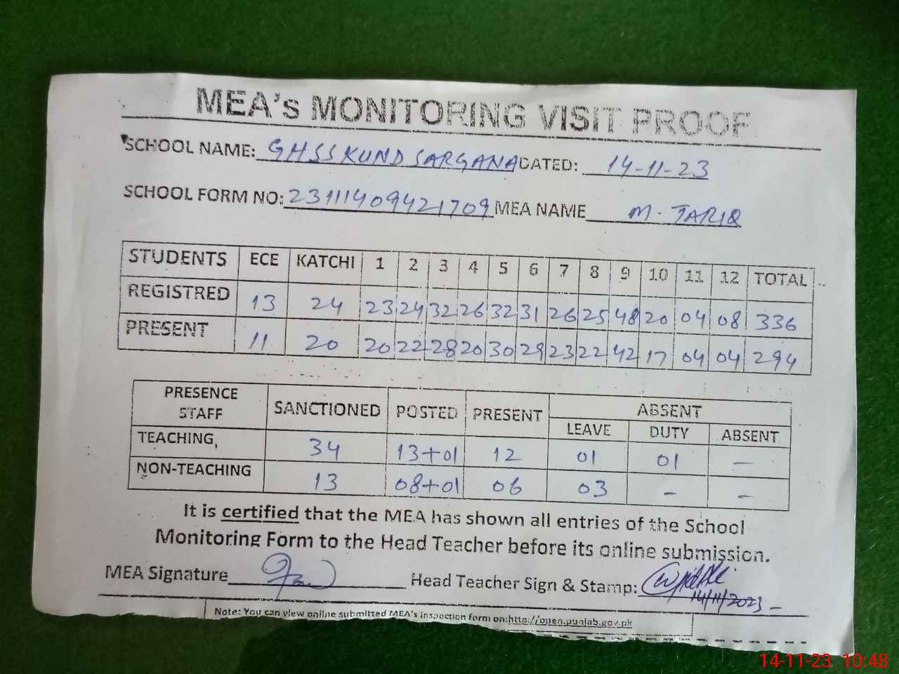 | EMIS Code: 36410228 | Name of School: GHSS KUND SARGANA, SARAI SIDHU | |||
