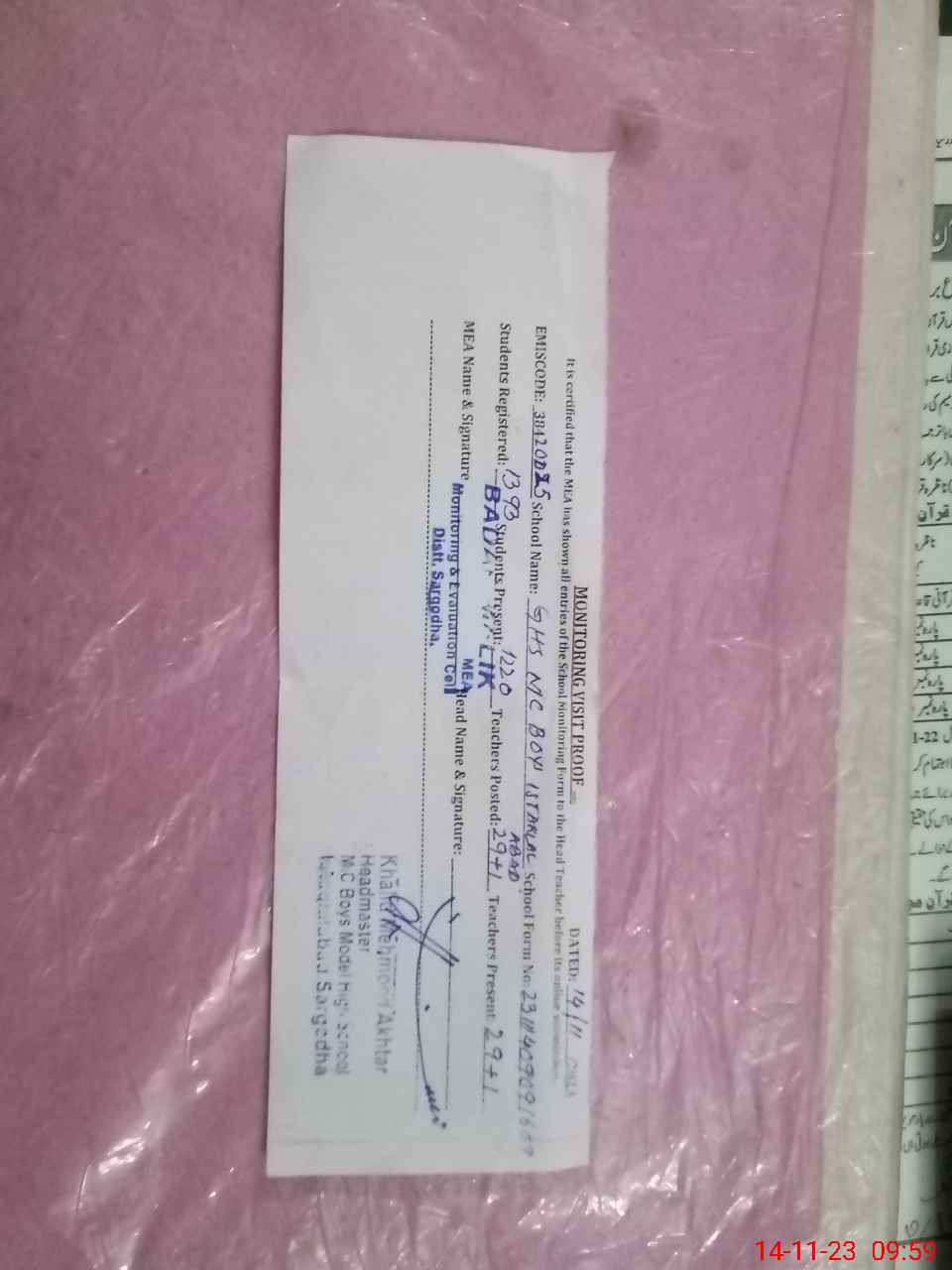 | EMIS Code: 38420025 | Name of School: GHS MC ISTAQLAL ABAD SARGODHA | |||