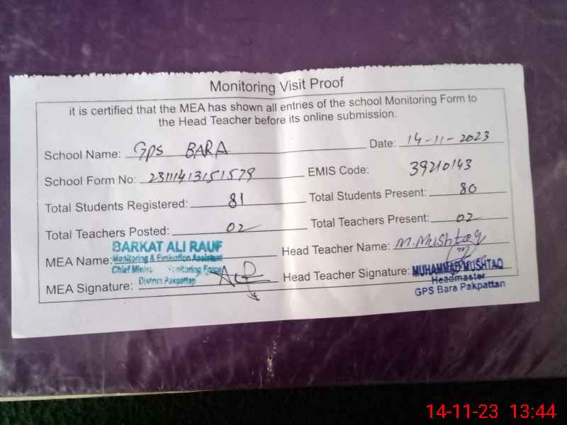 | EMIS Code: 39210143 | Name of School: GPS BARA | |||