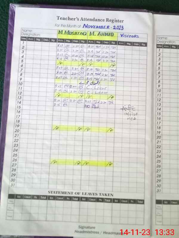 | Name: MU**** MU**** Designation: (School Headmaster's/Headmistress's) PST Phone/Cell Number: 03**** |