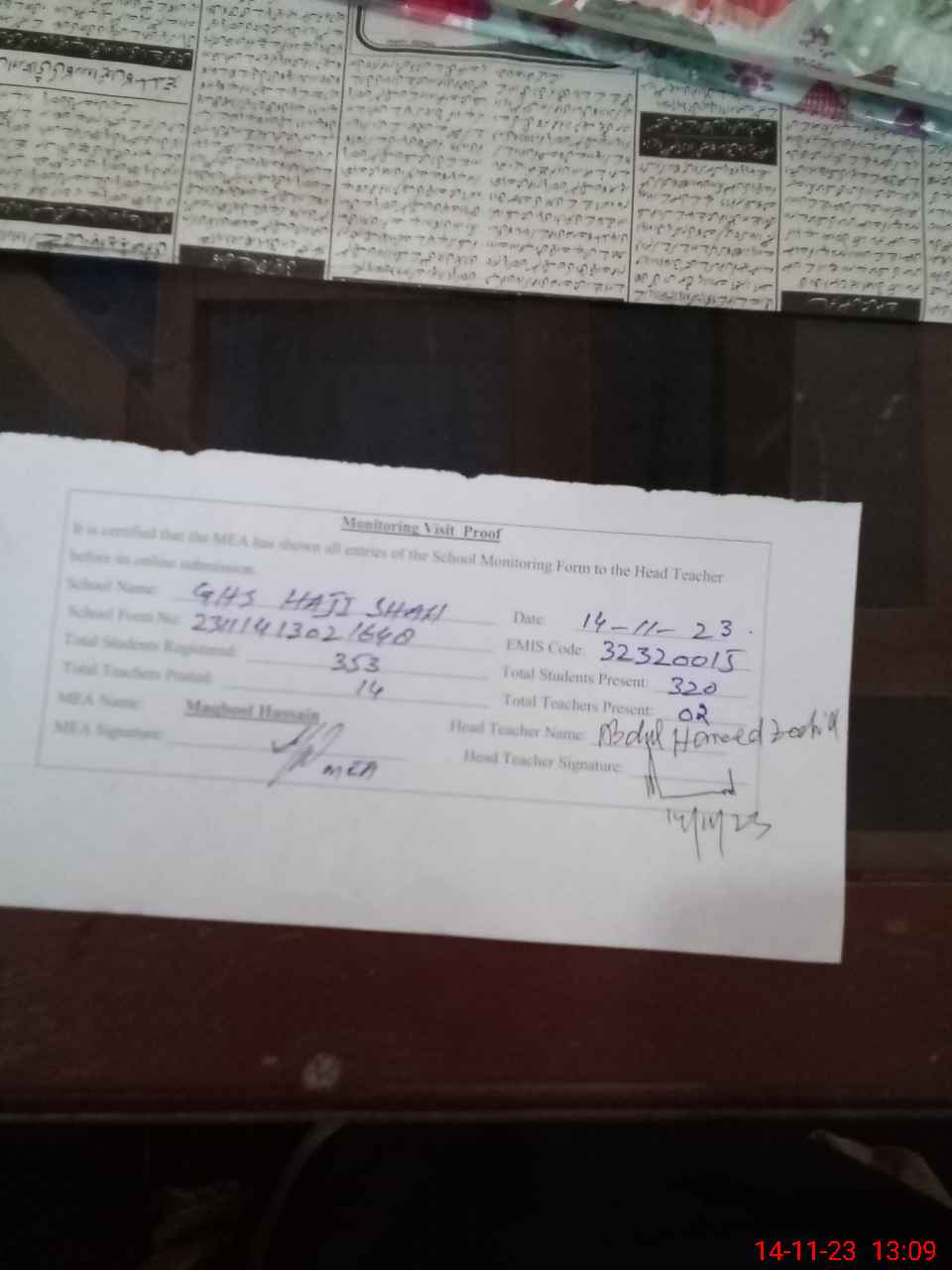 | EMIS Code: 32320015 | Name of School: GHS HAJI SHAH | |||