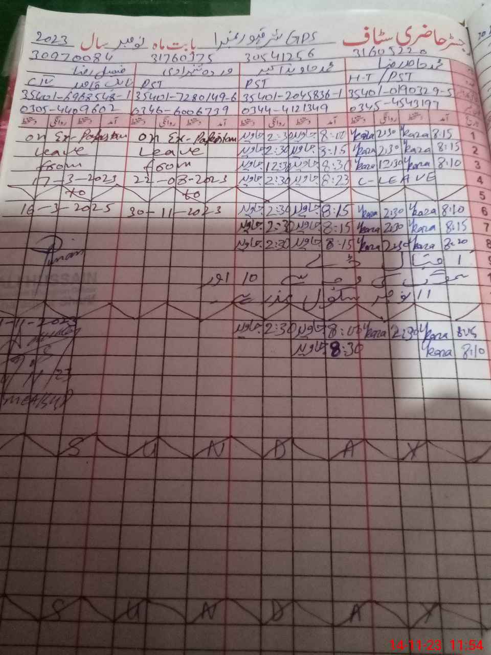 | CNIC | Full Name | Designation | R/C | Absence during last cal. month |
