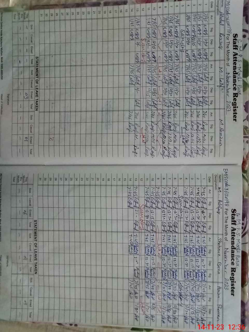 | Name: AB**** RA**** Designation: (School Headmaster's/Headmistress's) HEADMASTER Phone/Cell Number: 03**** |