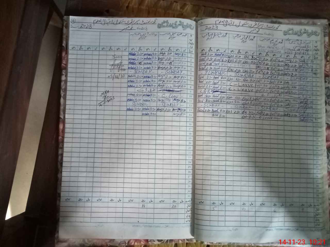 | CNIC | Full Name | Designation | R/C | Absence During Last Calender Month |
