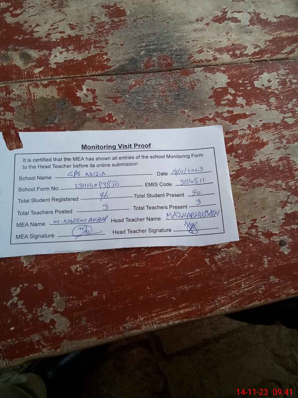 | EMIS Code: 31110511 | Name of School: GPS AZIZIA | |||