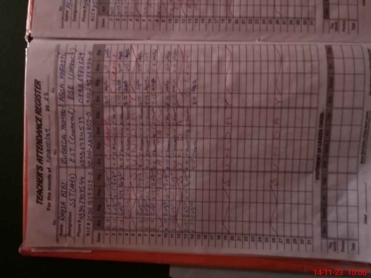 | CNIC | Full Name | Designation | R/C | Absence During Last Calender Month |